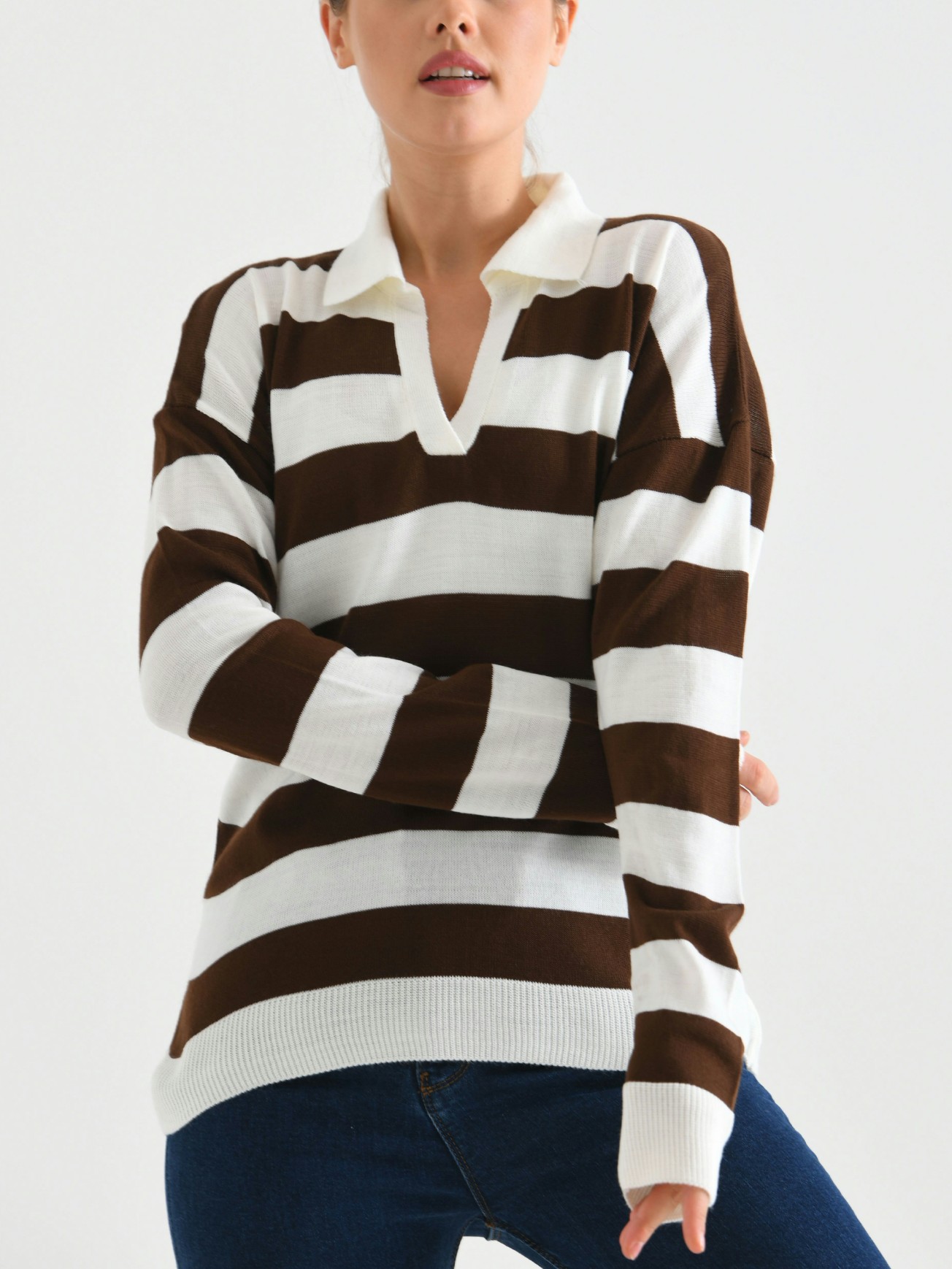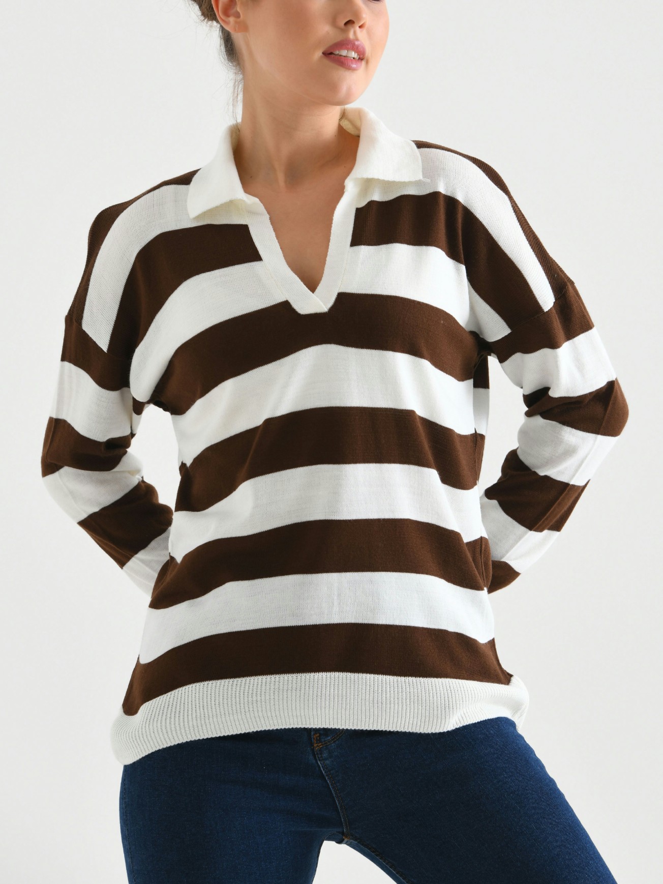 Kahverengi Aerobin Garnili Çizgili Bayan İkili Takım