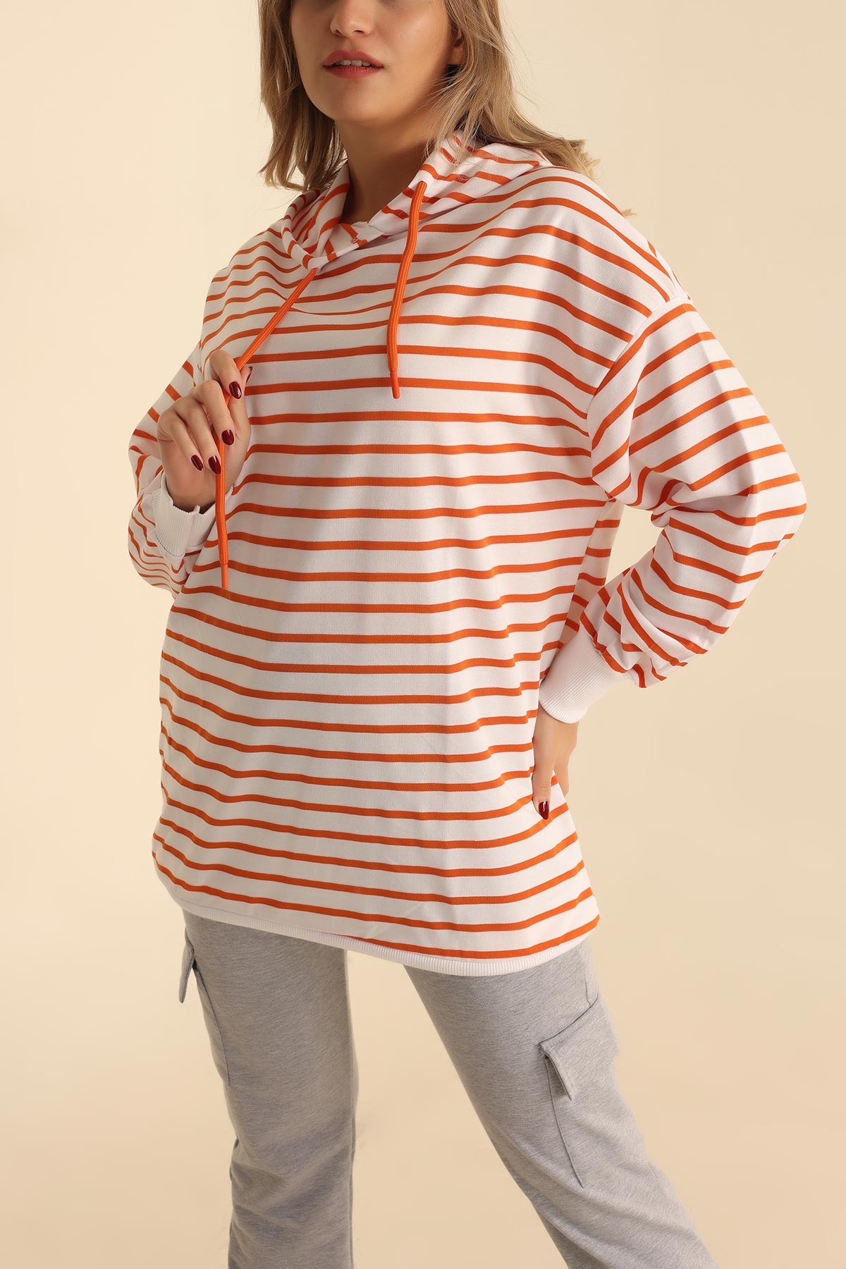 Renk: Turuncu Mevsim: Dört Mevsim Boy: Orta Boy Kalıp: Normal Kalıp Kol: Uzun Kol Ürün Detayı: Kapüşonlu Kumaş: İki İp Numune Beden: S Ürün Boyu: 76 cm Kumaş Türü: %100 PAMUK