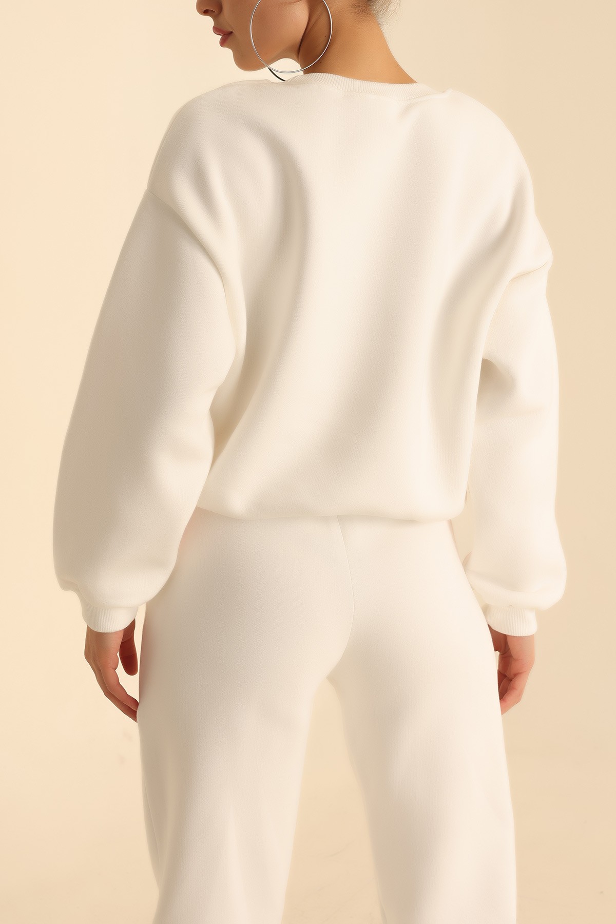 Krem Cep Taş İşlemeli Yaka Detaylı Belden Bağlamalı Scuba Kumaş İkili Takım
