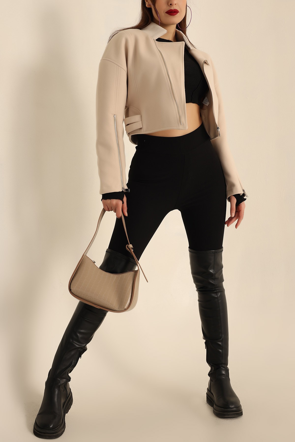 Renk: TaşMevsim: KışlıkBoy: Orta BoyKalıp: Normal KalıpKol: Uzun KolÜrün Detayı: AstarlıKumaş: KaşmirNumune Beden: SÜrün Boyu: 45 cmKumaş Türü: %50 Polyester %45 Viskoz %5 ElestanAksesuar: Yok